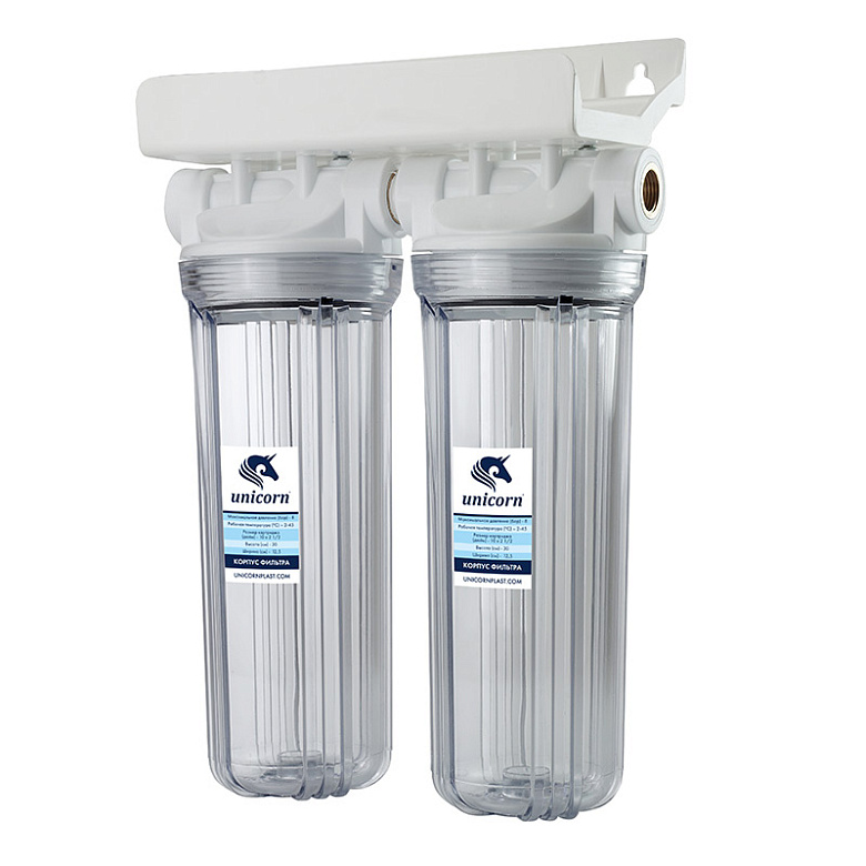 корпус двойной 10" для холодной воды прозрачный, подключение 1/2" Unicorn FH2P 1/2 DUO