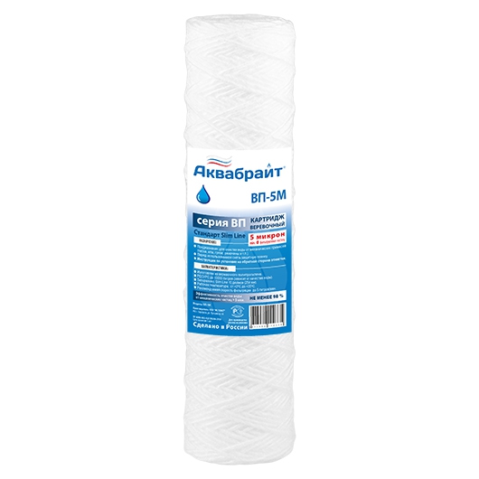 ВП-5 М, Веревочный Картридж АКВАБРАЙТ для механической очистки воды, Пористость 5 мкм. Типоразмер SL