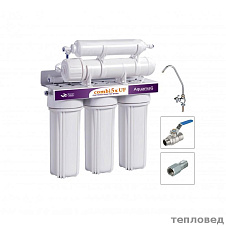 Пятиступенчатый фильтр "combi 5x" (PP+карбон+гранулированный уголь+минерализатор+угольный постфильтр) в комплекте: ключ, кронштейн, кран под мойку, набор для подключения в водопроводную сеть (двойная резинка в колбе).Технические характеристики