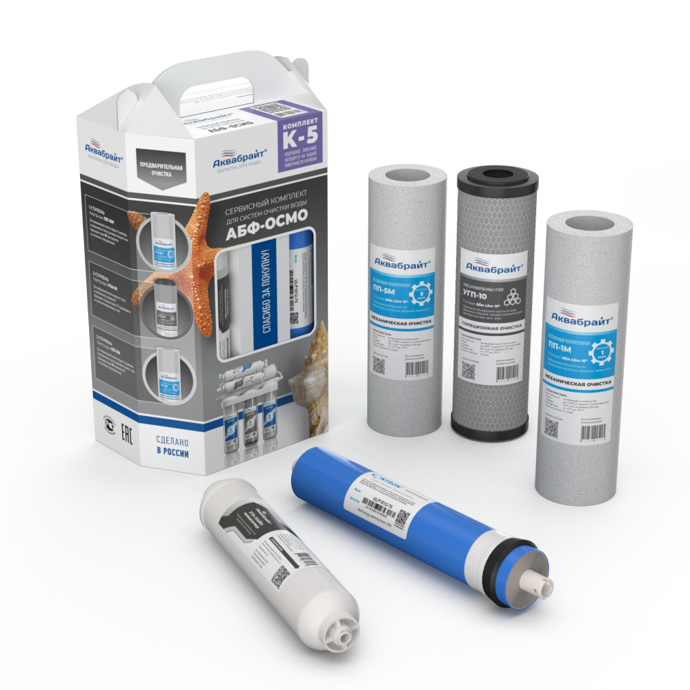 Комплект Картриджей К-5 АКВАБРАЙТ c МЕМБРАНОЙ VONTRON для очистки воды. Предназначен для установ