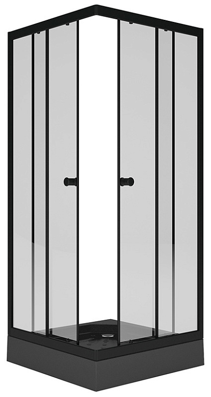 уголок душевой Square/Квадрат 80х80х185 стекло прозр.4мм, черн.профиль MELODIA