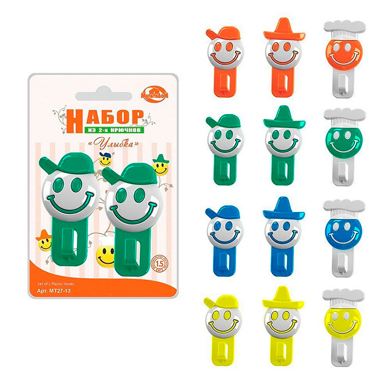 набор 2 крючка "улыбка-человечек" 8,5см, 3 дизайна, 4 цвета, б/выбора цвета 27.13
