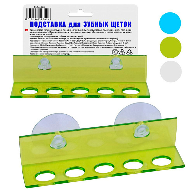 подставка для зубных щеток на присосках 3 цвета 34.146