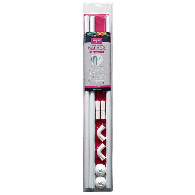 карниз для ванной комнаты 90х90х90см AL белый д.25мм Universal/Универсал MELODIA Mcr-00015BL