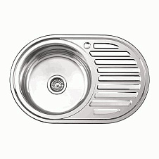 мойка нерж.врез.овал LEDEME 770*500*180 (0,8мм) выпуск 3 1/2" левая чаша ДЕКОР L67750-L