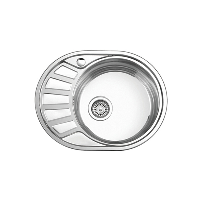 мойка нерж.врез.овал. LEDEME 570*450*170 (0,6мм) выпуск 3 1/2" правая ГЛЯНЦЕВАЯ L85745-6R