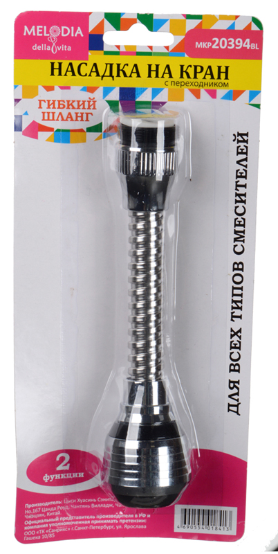 аэратор пласт. М22хМ24 с гиб. удлин. 14см, 2 функц., метал. шл., пласт.сетка MELODIA MKP20394BL