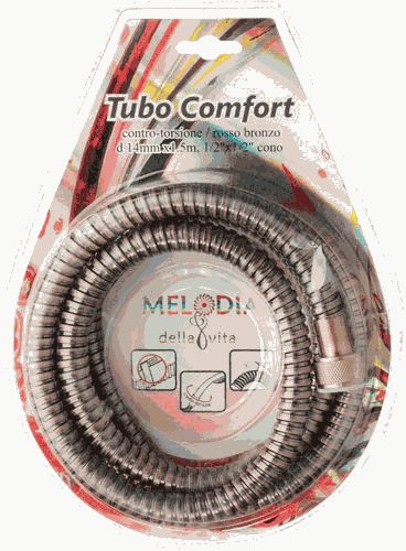 шланг д/душа MELODIA 1/2"*1/2"конус НЕРЖ.d14мм*150см дв.заж.Tubo Comfort, красн.бронза блистер MS-06
