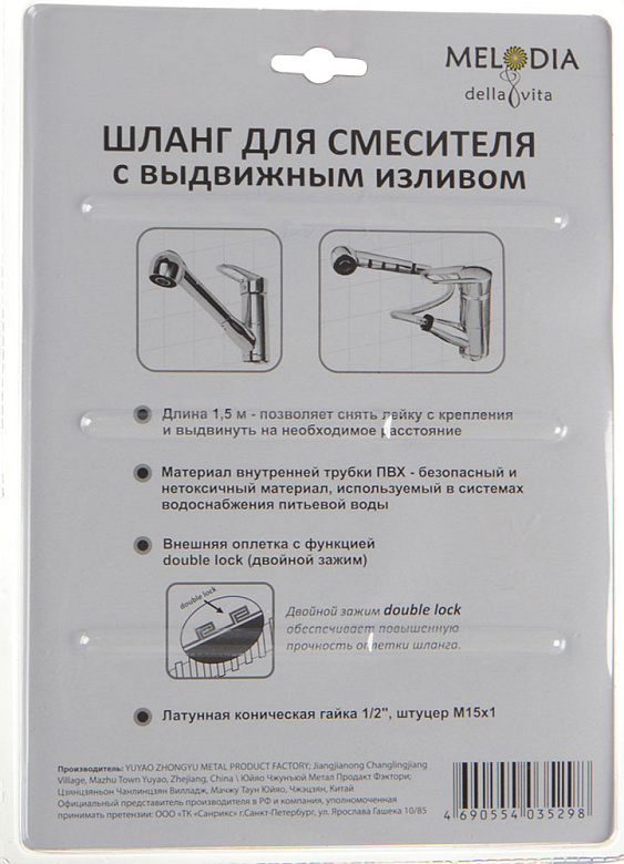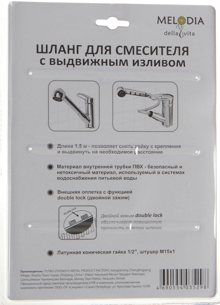 шланг д/смесителя с выдвижным изливом MELODIA KITCHEN/Кухня 1/2" L150см MKP20299BL