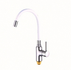 4448 VIKO кухня боковой с белым гибким изливом Ø35 с гайкой (нерж. сталь), Silver