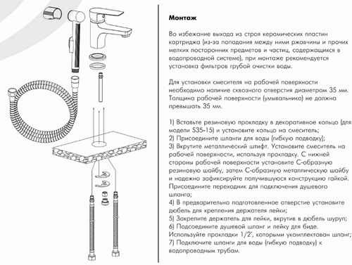 смеситель умывальник ROSSINKA картридж д.35мм, с гигиеническим душем S35-15