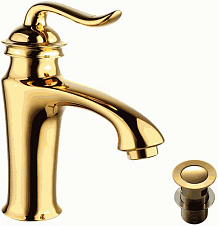 смеситель умывальник LEMARK Brava монолитный с донным клапаном клик-клак, золото LM4706G