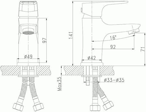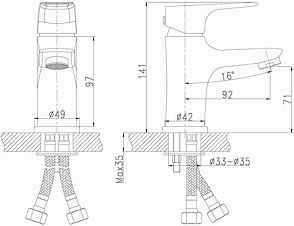 смеситель умывальник ROSSINKA картридж 35мм , монолитный ,RS31-11