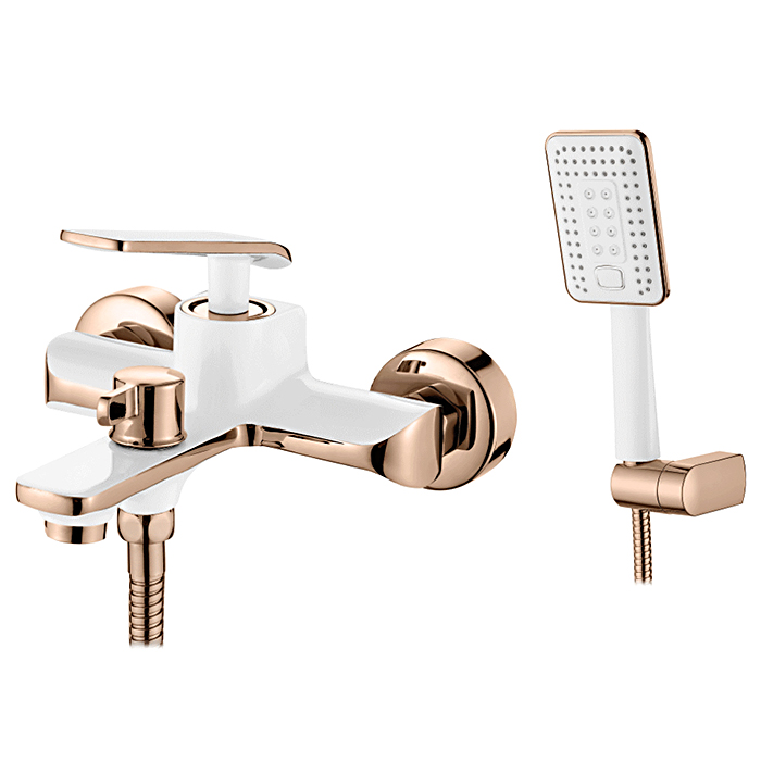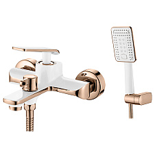 смеситель ванна LEDEME короткий излив дивертор в корпусе бело/розовый L3274WR