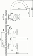 смеситель ванна ROSSINKA с поворотным изливом 165мм, дивертер керамика, RS39-83