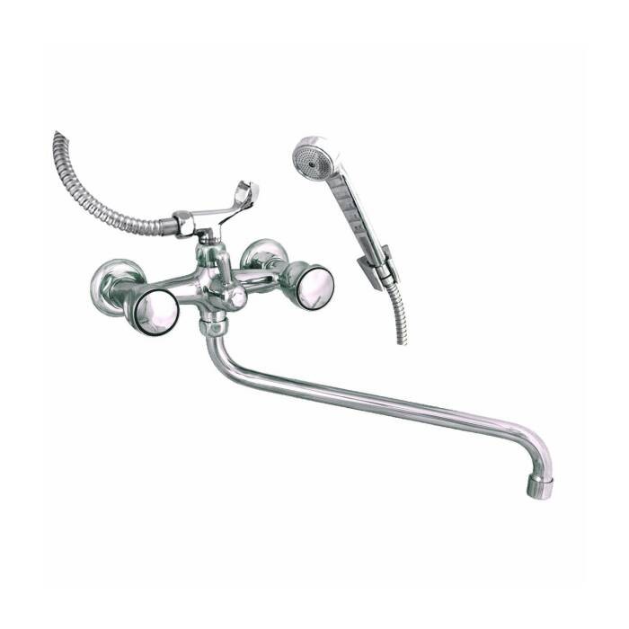 Назначение: для ванны с душем; Серия: серия ЭКО; Модель: ЦС-СМ 500/1-5 К; Модель маховика/ручки: М_Супер; Управление: двуручный; Тип излива: круглый излив, душевой шланг н/ж сталь, хромированная пластиковая лейка и кронштейн; Бренд: Центр Сантехники (Подольск); Артикул: ЭМ900853;Размеры(ДхШхВ) (см): 38/13.5/9