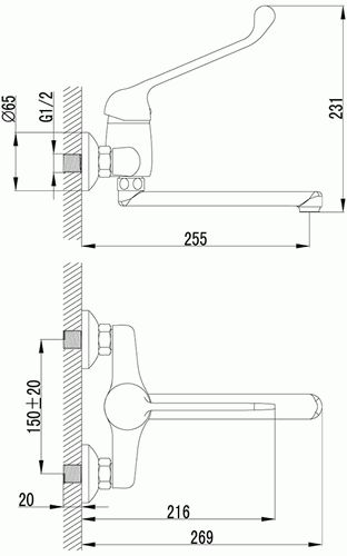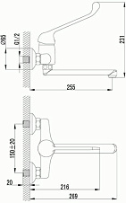 смеситель кухня хирургический LEMARK Project, картридж 40мм настенный локтевой LM4611