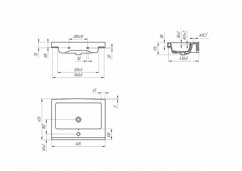 Умывальник универсальный GRAND 60 1 отв. Cersanit