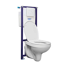 Состав комплектов инсталляции: унитаз подвесной + инсталляция + кнопка смыва + сиденье; Материал сиденья унитаза: полипропилен; Механизм мягкого закрывания ( микролифт/Soft close): микролифт; Модель: Альфа комфорт; Бренд: Santeri; Артикул: 1.3816.4.S00.00B.2;Размеры(ДхШхВ) (см): 62.6/45.2/114