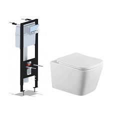 Комплект 4 в 1 инсталляция + кнопка смыва хром + унитаз подвесной сиденье дюропласт микролифт Quadra