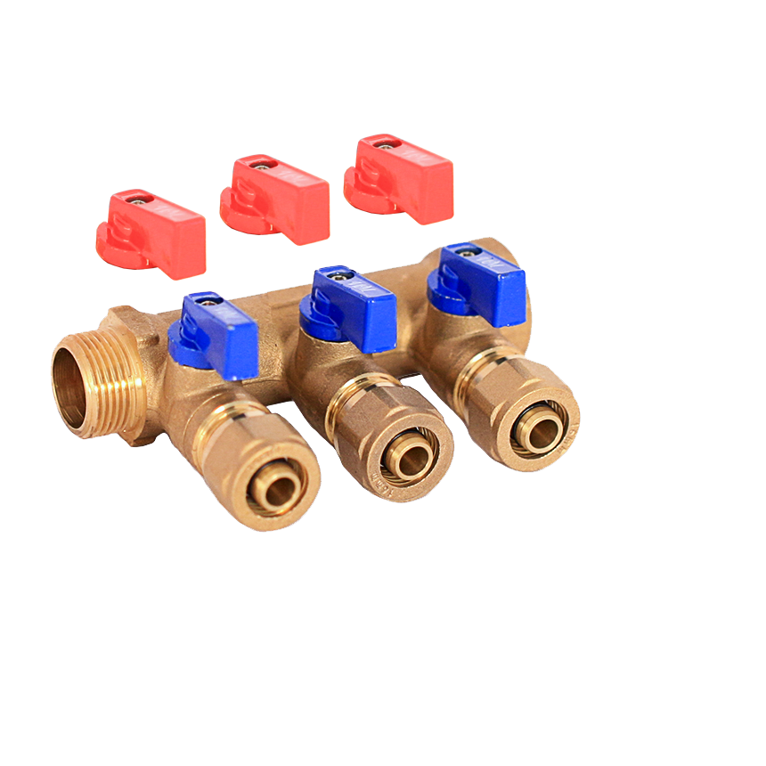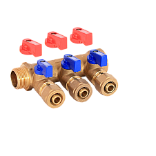 Коллектор TIM м/п 3/4" х 16 х 3 вых. универсальный (кр+син ручки)