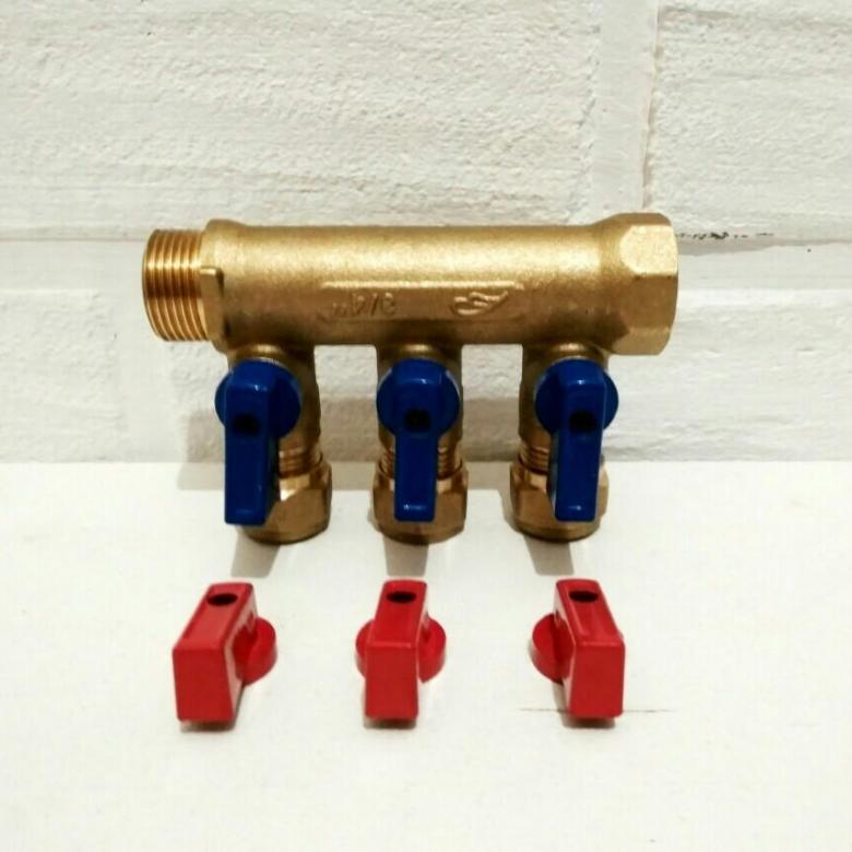 Коллектор WM м/п 3/4" х 16 х 3 вых. универсальный (кр+син ручки)