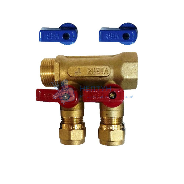 Коллектор WM м/п 3/4" х 16 х 2 вых. универсальный (кр+син ручки)
