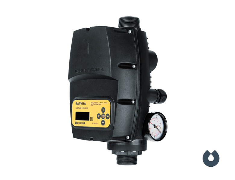 Частотный преобразователь UNIPUMP ВАРУНА — электронный блок, автоматически управляющий функциями остановки и пуска двигателя однофазного насоса мощностью до 2,2 кВт, при максимальной номинальной частоте до 50 Гц. Устройство модулирует частоту (Гц) входного тока двигателя насоса, изменяя скорость его вращения, в зависимости от потребности воды в системе. При этом давление в системе поддерживается на одном, заданном пользователем уровне, а мощность, потребляемая двигателем насоса, пропорциональна величине потока расходуемой воды, что позволяет существенно экономить электроэнергию при постоянно изменяющемся водопотреблении в течение суток.Технические характеристики