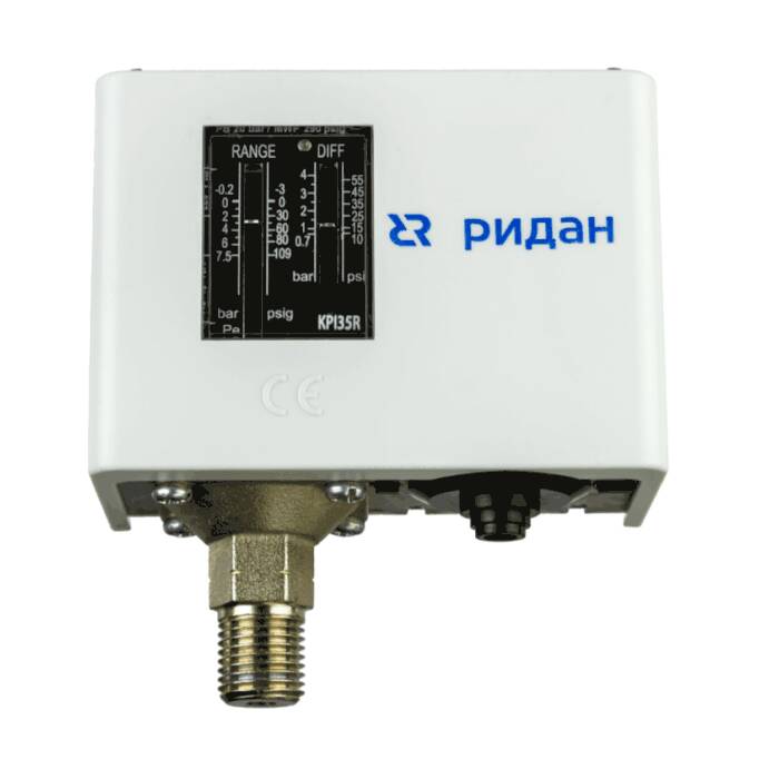 Модель: KPI 35R; Диапазон настройки: -0.2-8 бар ; Присоединение: 1/2"; Бренд: Ридан; Артикул: 060-132566R;Размеры(ДхШхВ) (см): 8.3/8.7/6