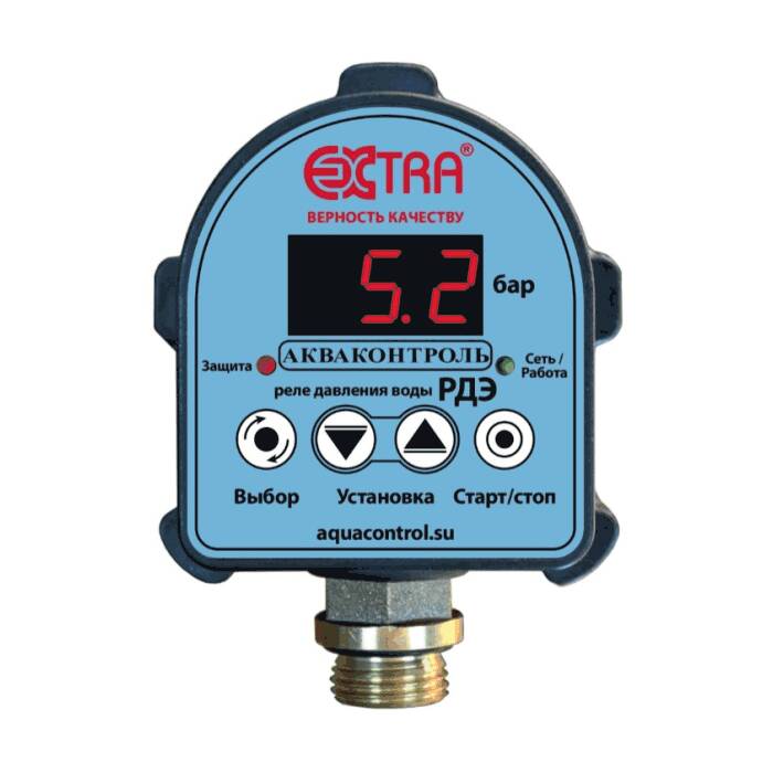 Тип: электронное; Модель: РДЭ-10-2,2; Диапазон настройки: 0.5-9.9 бар ; Присоединение: 1/2"; Бренд: Экстра АКВАКОНТРОЛЬ;Размеры(ДхШхВ) (см): 12/14/12