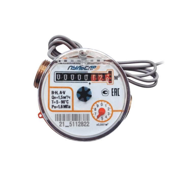 Счетчик г/в х/в имп Пульсар Ду15 90С L80 10л/имп в/к кл 5 лет Тепловодохран Н00065307