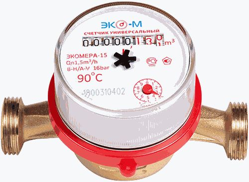 счетчик унив. для воды ЭКОМЕРА-15 БЕЗ Комплекта подключения Ду15, (L110) (4640030691111)