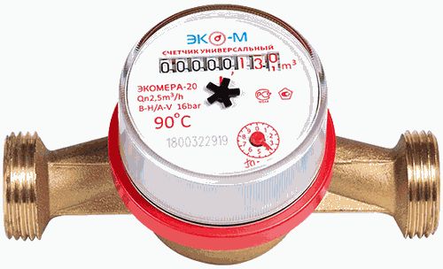 счетчик унив. для воды ЭКОМЕРА-20 со штуцерами Ду20, L130
