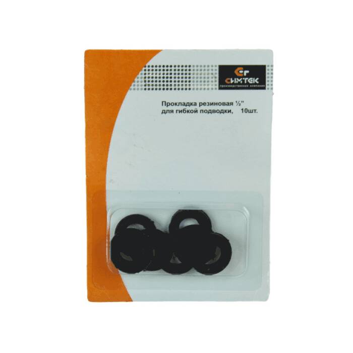 Прокладка резина гиб/подводки Ду15 (1/2") 19х10мм h=2мм 10шт блистер Симтек 10-0021