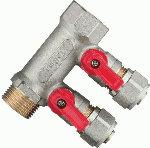коллектор д/м.пл. 3/4" в/н с 2-мя шар.кран. конус 16мм(1/2") TeRma (14001)